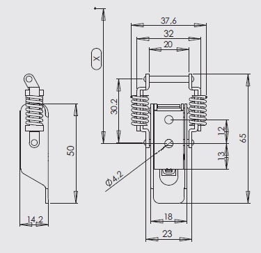 Cotes X pour une tension de 20 daN : 47,9 mm avec crochet AC101.