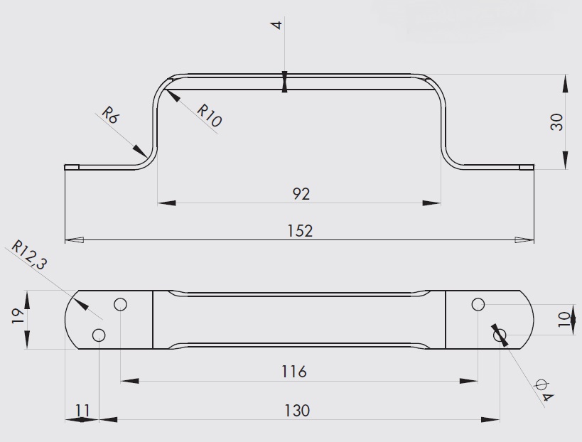 Métal de 15/10e, 4 trous de Ø 4 mm ou non percée pour soudure.