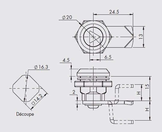 / Verrou 1/4 de tour complet tête fente de tournevis - Corps de 15mm