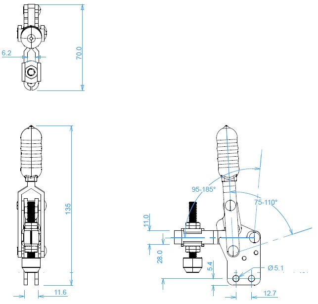 Abrazadera de palanca con palanca vertical - Base vertical