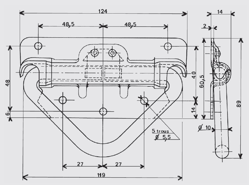 Placa: estampada, metal de 20/10e, 5 agujeros Ø 5,5mm