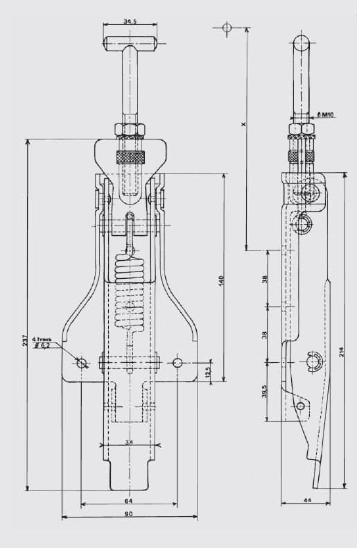 Pata de fijación : metal de 30/10e ; 4 agujeros de Ø 6,2 mm