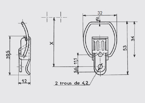 Pata de enganche : metal de 20/10e, 2 agujeros de Ø 4,2mm (o sin agujero de soldadura)