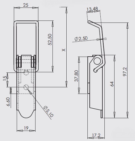 Clasificación de montaje aproximada con el gancho AC 101 : X = 80 mm para una tensión de aproximadamente 35 daN