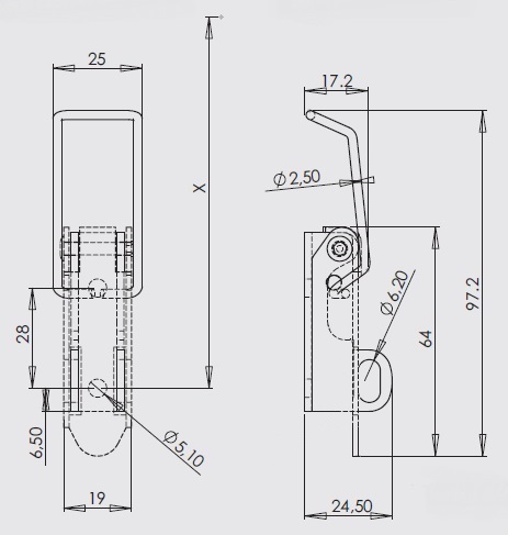 Pata de fijación : reforzada - metal de 20/10e, 2 agujeros de Ø 5,1 mm (o sin perforación para soldadura)
